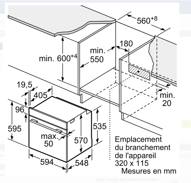 Encastrement H x L x P (cm) 58.5-59.5 x 56-56.8 x 55