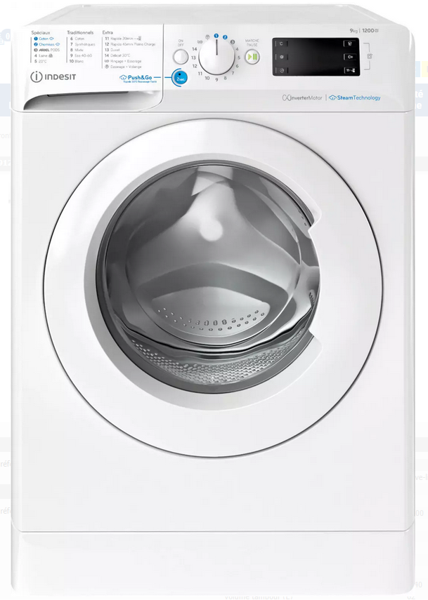 Programmes spéciaux Push&Go avec vapeur, Coton + vapeur, Chemises + vapeur, Ariel Pods, 20°C, Blanc